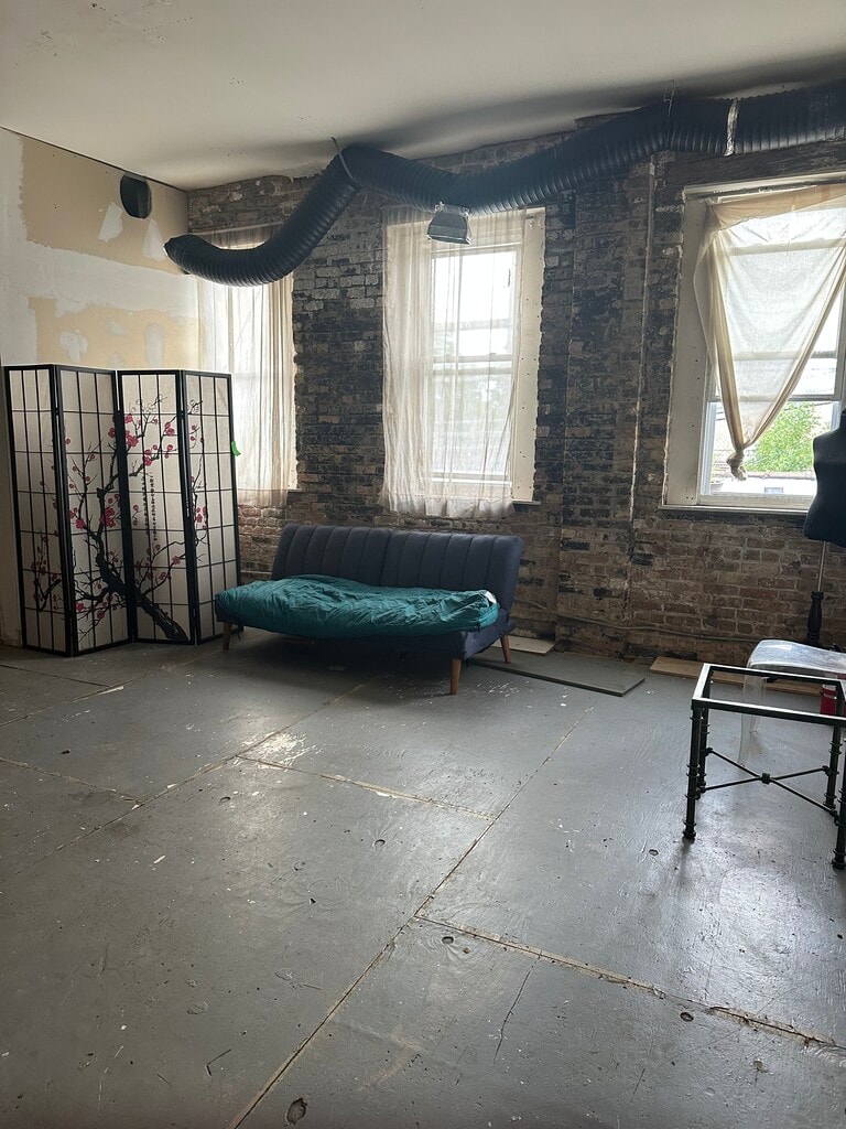 The building is full of welders, photographers, screen printers, videographers, etc. if you creative this is for you There is a bathroom down the hall and a gym across the street. Close to the train the L and the expressway it’s only 10 minutes to downtown Chicago. Lots of free parking laundry in the building. Call to schedule. I can show any day at 1 o’clock.