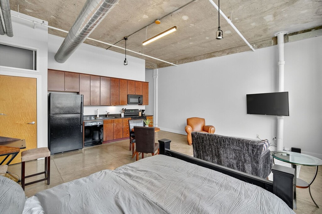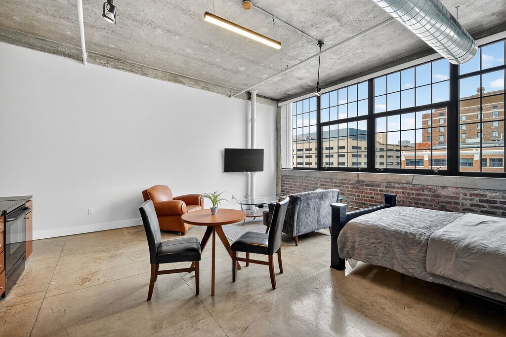 Beautiful furnished studio apartment with exposed brick, high ceilings and tons of natural daylight! Property includes in unit washer/dryer, a community lounge & work space with wifi, outdoor area, and workout room. Take advantage of all this while also enjoying the conveniences and perks downtown living has to offer!