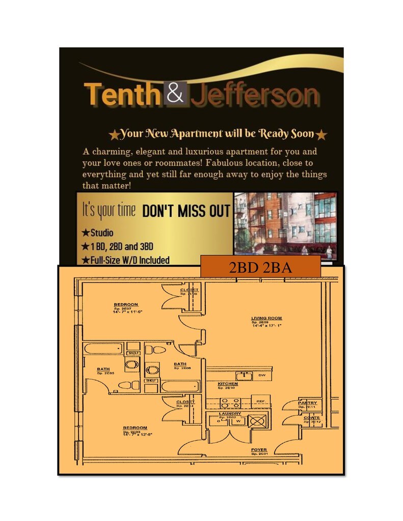 Income Restrictions apply, please contact the community for more details. Welcome to 10th and Jefferson in Nashville, Tennessee, a charming three-story apartment building featuring 54 units courtesy of the Metropolitan Development and Housing Agency. Our community boasts a prime location near I-65 and I-40, making it easy to access shopping, dining, and nearby parks. Experience a blending of convenience and comfort in our welcoming atmosphere. We're excited to offer you an ideal place to call home! Pricing and Availability subject to change. Some or all apartments listed might be secured with holding fees and applications. Please contact the apartment community to make sure we have the current floor plan available.