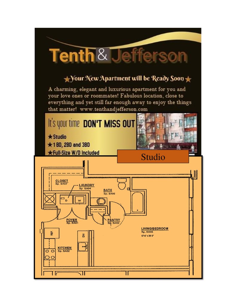 1 Bed 1 Bath - Floorplan 2 Apartment Unit: 115Apartment Model: 1 Bed 1 Bath1 Bedroom, 1 Bath, 710-841 sq ftAvailable NowStudio