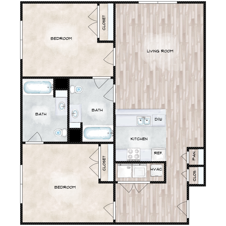 Apartment Model: 2 Bed 2 Bath2 Bedroom, 2 Bath, 917-1124 sq ftAvailable NowFloorplansPhotos![]()