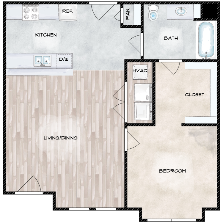 1 Bed, 1 Bath, 586-606 sq ftModel Gallery