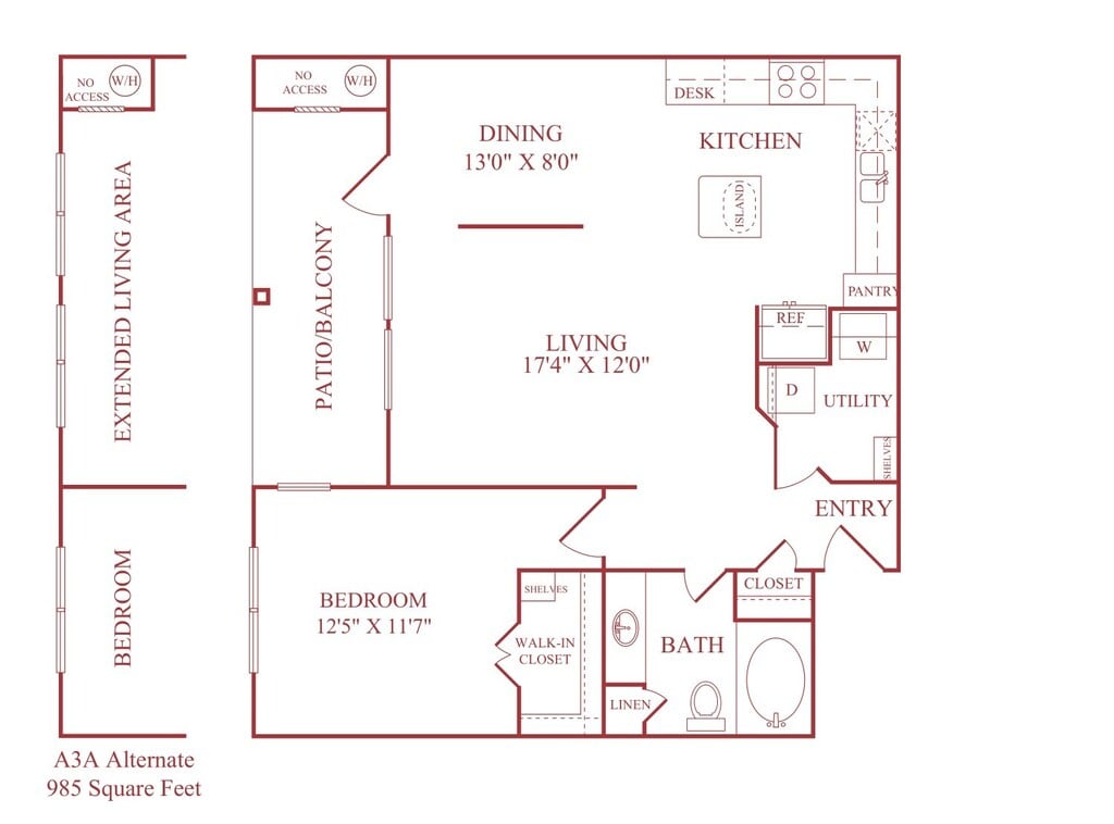 Apartment Model: A3A1 Bedroom, 1 Bath, 985 sq ftAvailable Now![]()