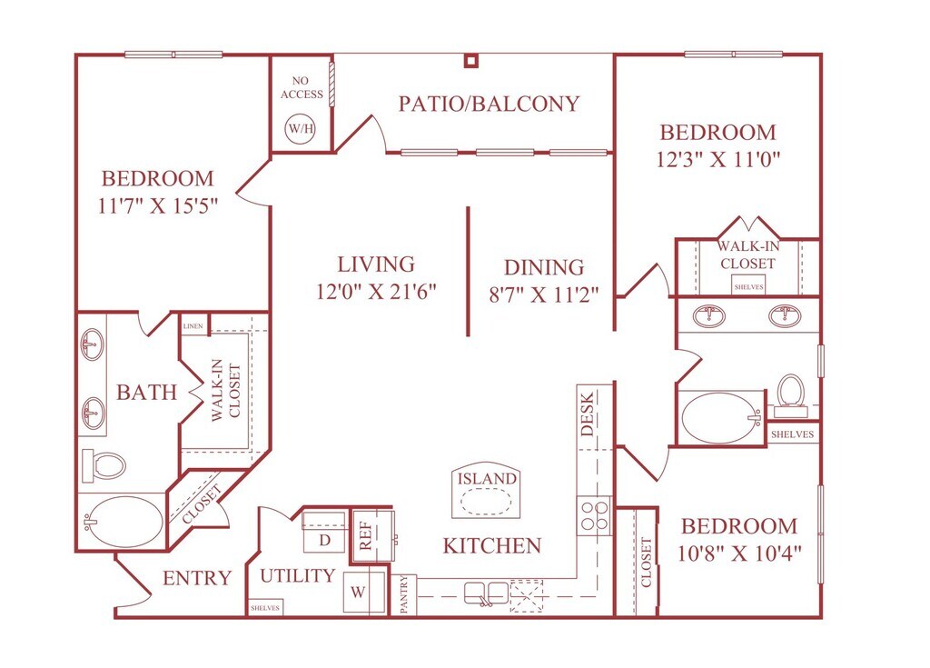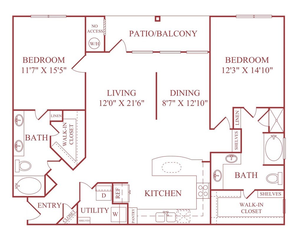 2 Beds, 2 Baths, 1488 sq ftAvailable NowLargest 2 BedroomThis is the largest 2 Bedroom at this PropertyModel Gallery