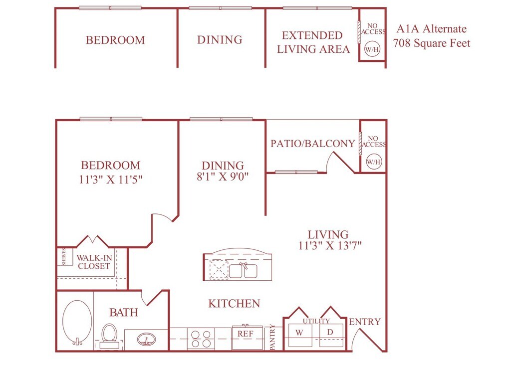 Apartment Model: A1A1 Bedroom, 1 Bath, 708 sq ftAvailable Now![]()
