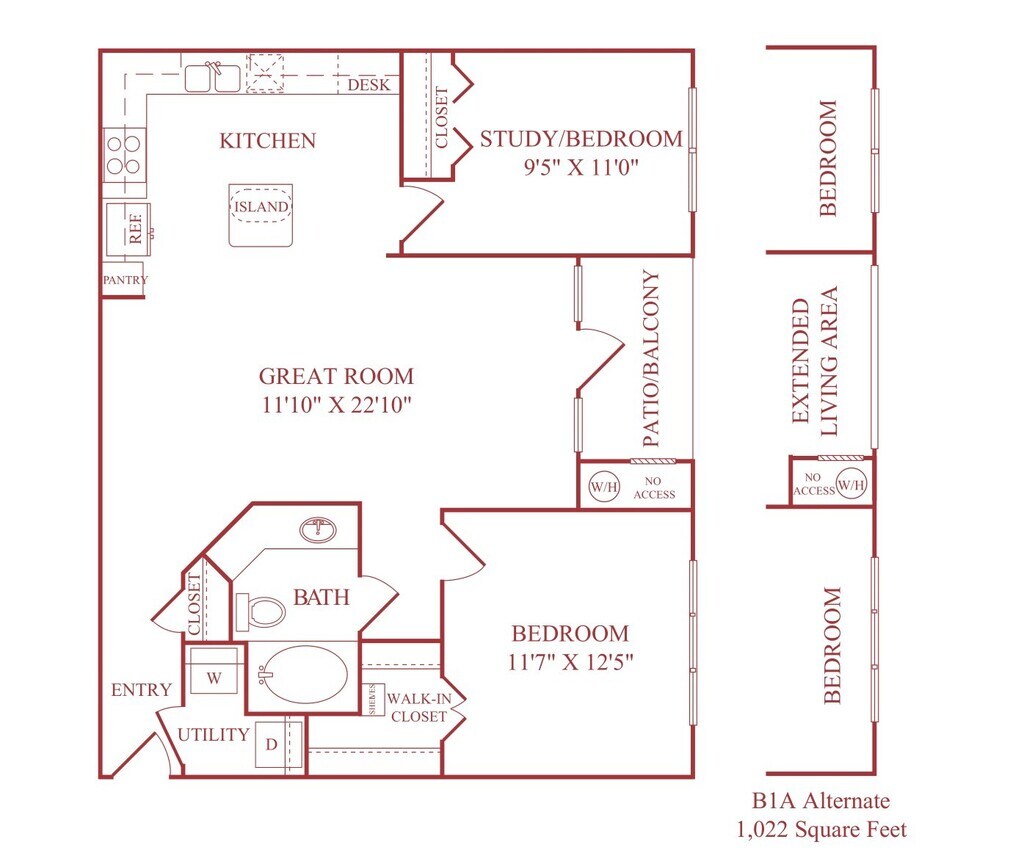 Apartment Model: A31 Bedroom, 1 Bath, 870 sq ftAvailable Now![]()