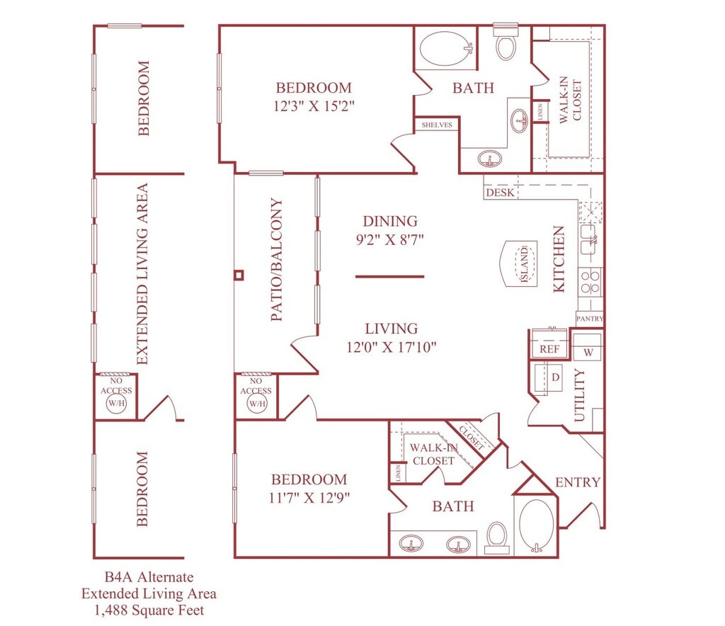 Apartment Model: B4A2 Bedroom, 2 Bath, 1488 sq ftAvailable Now![]()