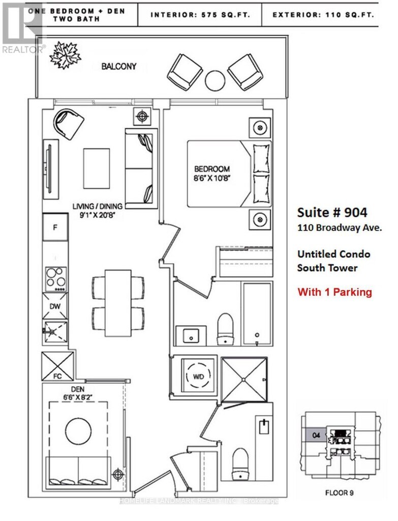 Brand New Untitled condo with a PARKING! Be the first to live in this beautifully designed 1 Bedroom + Den,2 Bath suite featuring a smart and functional layout with carpet free hardwood floors plus a balcony. Enjoy sunset west-facing views from your private balcony. The sleek modern all new kitchen offers integrated appliances,quartz countertops,and custom cabinetry. The bedroom with the real window includes a 4-piece ensuite and a mirror closet. Spacious den with door - perfect for a home office,nursery,or 2nd bedroom. Ensuite laundry,11' high ceilings,and floor-to-ceiling windows enhance the modern,open-concept design. Two bathrooms for ultimate convenience. All Window Coverings were ordered and to be installed soon. Luxury living with state-of-the-art amenities including Indoor/Outdoor pool,Co-Work Space,Spa,Gym,Yoga studio,Rooftop lounge,BBQ terrace,Visitor parking and more (Many amenities are currently under construction). Steps to Yonge & Eglinton,TTC subway,future LRT,Restaurants,Trendy shops,and Entertainment. Don't miss this RARE offering with a PARKING. Perfect for professionals or couples seeking style and comfort in Midtown Toronto! Move-in Anytime! (id:52069) ID#: 2008735
