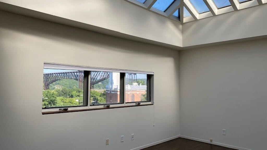 A stone’s throw from top rated cafes, bakeries and restaurants, this residence is a commuter’s dream! Conveniently positioned in a lively, walkable neighborhood, commuters will enjoy the quick and easy access to the Poughkeepsie Train Station, the Poughkeepsie Waterfront, Route 9, and the Mid-Hudson Bridge. Located on the top level of a four-story masonry Mill Building, this one-bedroom unit offers hardwood floors, a full ceramic bathroom, large windows and fully appointed kitchen which includes a dishwasher. The centerpiece of this residence is absolutely the views of the Walkway Over The Hudson, The Hudson River and its stunning cathedral ceiling-skylight. Apartment features exposed brick, unique round corners and overlooks the Fallkill Creek. Enjoy a comfortable climate-controlled atmosphere with central air and heat. The complex itself offers off-street parking in private lot, and laundry facilities are located on each floor for your convenience. Take in stunning views of the Hudson at the complex’s private roof top terrace, presenting a clear view of both the Railroad Bridge and the Mid-Hudson Bridge. Originally constructed in 1850 the Mill Building is listed on the National Registry of Historic Structures. Featuring architect design and details in each of our 20 units, elevator and roof top deck, the property is thoughtfully managed by the owner, including all landscaping and snow plowing responsibilities. 24-hour on call emergency maintenance services are available when needed. Additional Storage Available. Tenant is responsible for all utilities. City of Poughkeepsie School District. See Unit 4E on Floor Plan Map for Reference.