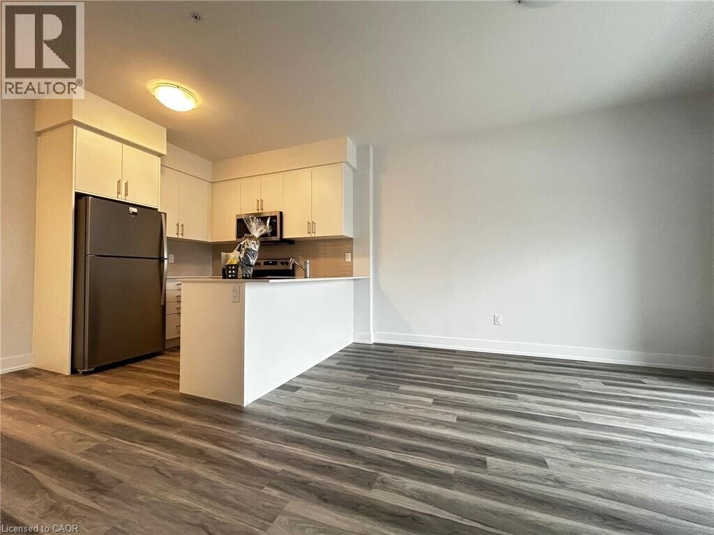 Welcome to 1100 Lackner unit 421: A brand-new,airy 1-bedroom,1-bathroom condo located in the highly desirable Lackner Ridge community of Kitchener. Thoughtfully designed and move-in ready,this stylish unit offers a spacious open-concept layout featuring 9-foot ceilings,abundant natural light,and elegant laminate flooring throughout. The contemporary kitchen is equipped with quartz countertops and stainless steel appliances,ideal for both daily living and entertaining. The inviting living and dining area walks out to a large private balcony overlooking a serene,tree-lined walking trail,perfect for relaxing outdoors. The private primary bedroom includes a generous closet and access to a full bathroom. Added convenience includes in-suite,full-size laundry located in a dedicated laundry room. This unit comes with one surface parking space and a secure locker on the third floor for extra storage. Residents can enjoy comfort-style amenities in a welcoming building,including a gracious lobby,luxurious lounge,elegant party room,visitor parking,and shared sitting areas. Ideally situated just minutes from major shopping destinations such as Walmart,Costco,Canadian Tire,and Real Canadian Superstore,and within walking distance to Food Basics,Rexall,and Dollarama. Easy access to Highways 7,8,and 401,public transit,nearby bus routes,the GO Station,and close proximity to Wilfrid Laurier University,University of Waterloo,and Conestoga College make this location exceptionally convenient. This condo offers excellent opportunity for professionals or couples seeking quality living in a prime location. Book your showing today! (id:52069) ID#: 1564507
