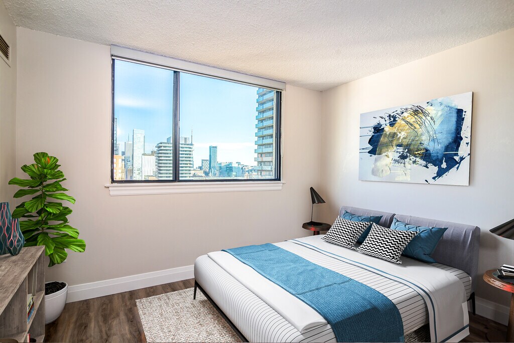 1101 Bay apartments reside one block south of the corner of Bay and Bloor one of the most central locations within the city of Toronto. A short walk to the shops, restaurants and entertainment district of Bay / Yorkville, 1101 Bay is just minutes away from Canada's first ever Eataly, an immersive Italian marketplace with a variety of unique offerings. The apartments are also closely located to U of T, George Brown, Toronto Metropolitan University, and the downtown Toronto core. Residents enjoy first-class amenities, including a fitness center, indoor pool, Wi-Fi study lounge, outdoor terrace and an advanced mobile powered laundry facility. With its premier downtown location and exceptional building features, 1101 Bay is ideal for urban professionals and graduate students alike.