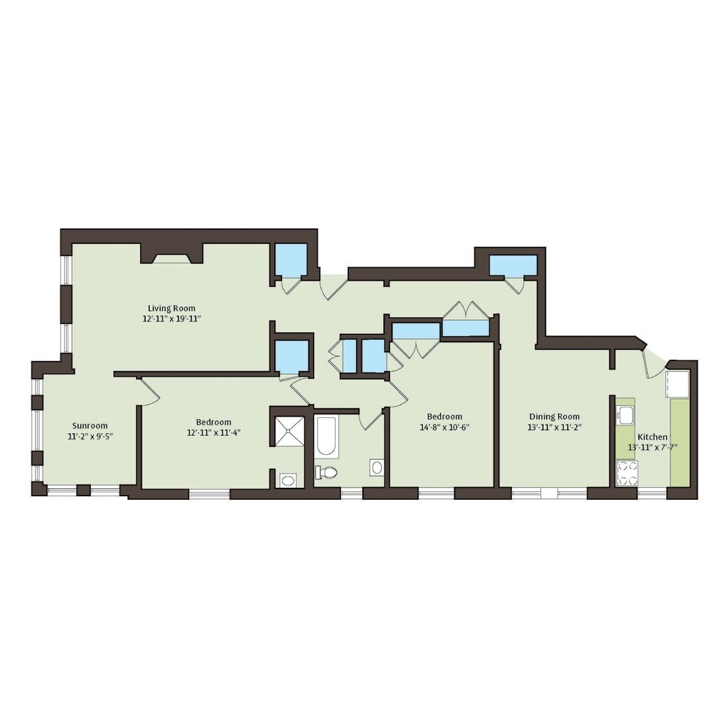 Apartment Model: 1101-2bBFrom $2,2952 Bedroom, 1 Bath, 1317-1342 sq ftAvailable Now![]()