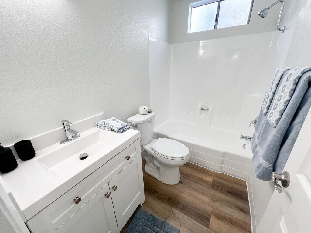 Indulge in refined living in this modern elegantly renovated unit featuring premium vinyl flooring, stainless steel appliances, granite countertops, walk in closet with un unit washer/dryer and designer fixtures The building boasts resort-inspired amenities including a sun drenched courtyard, a sparkling oversized pool.