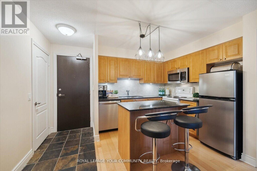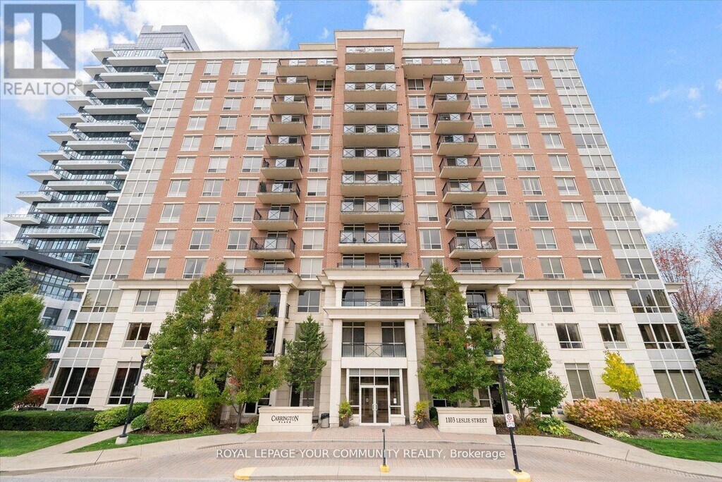 Welcome to 1103 Leslie St Unit 1006 at Carrington Place,a suite with a thoughtful and functional design,showcasing a convenient split bedroom layout,including a generously sized primary bedroom featuring a 3-piece ensuite and walk-in closet,while the second bedroom boasts a double closet and beautiful west-facing windows. The open floor plan,complimented with seamless hardwood flooring,offers versatile living possibilities. The open kitchen design is enhanced by the presence of a center island and is completed with quartz countertops. Step outside onto the spacious private balcony to enjoy your morning coffee amidst ever-changing seasonal views. For added convenience,the underground parking spot is thoughtfully positioned near the elevator,and a spacious storage locker ensures an organized and functional living space. Centrally located,within a 2-minute walk to the new Eglinton LRT Station,Edward's Gardens,and Sunnybrook Park and close to The Shops at Don Mills. FRIDGE HAS BEEN CHANGED THIS RECENTLY. Furnitures are not included. (id:52069) ID#: 2183530