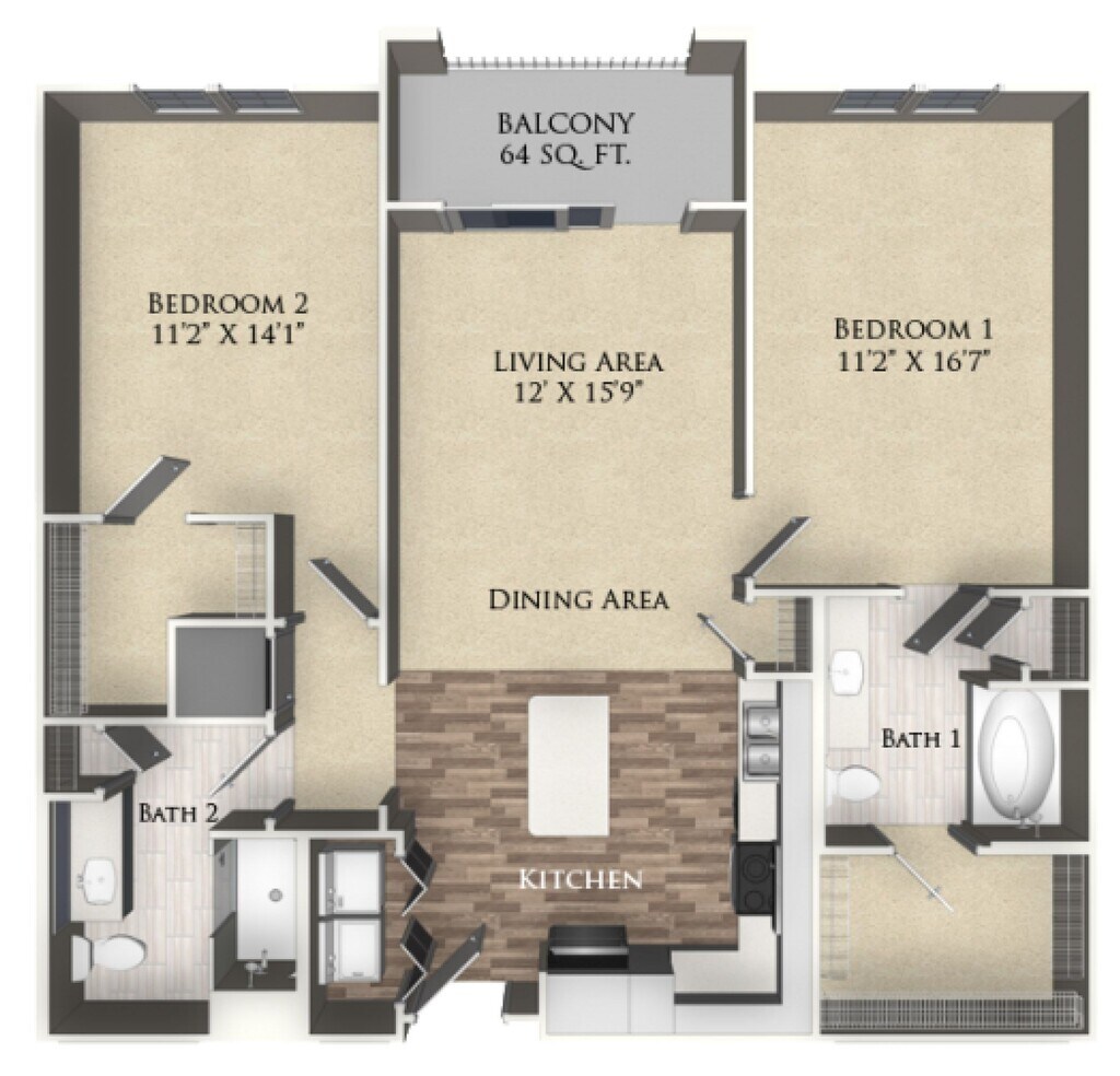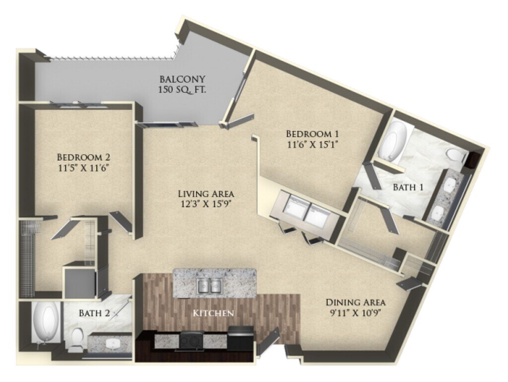1 Bed, 1 Bath, 880 sq ftAvailable NowLargest 1 BedroomThis is the largest 1 Bedroom at this PropertyModel Gallery