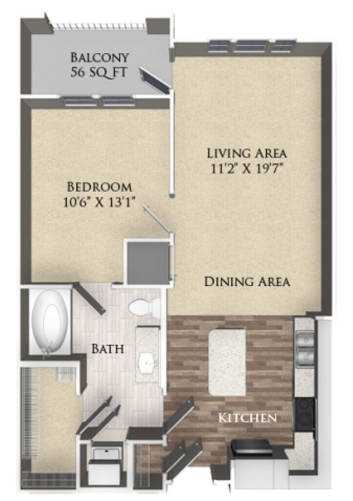 A4 - Floorplan 1 Apartment Unit: 3109Apartment Model: A4$1,5821 Bedroom, 1 Bath, 670 sq ftAvailable NowFloorplan A10