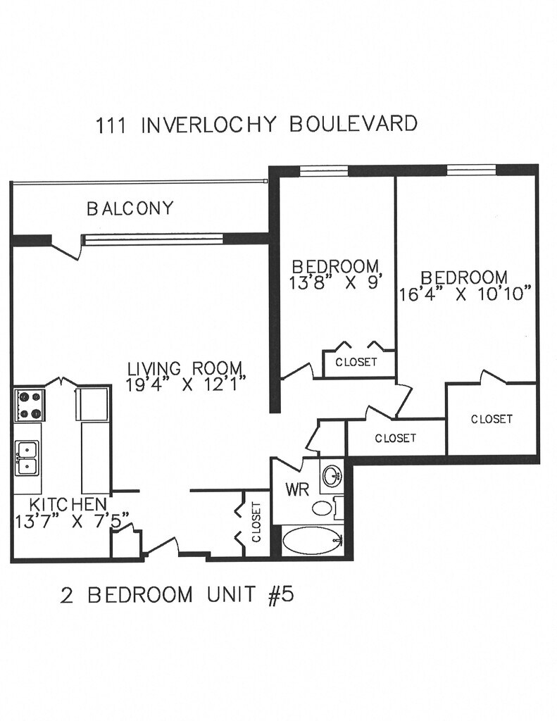 Two bedroom,one bathroom - Floorplan 5 ![]()