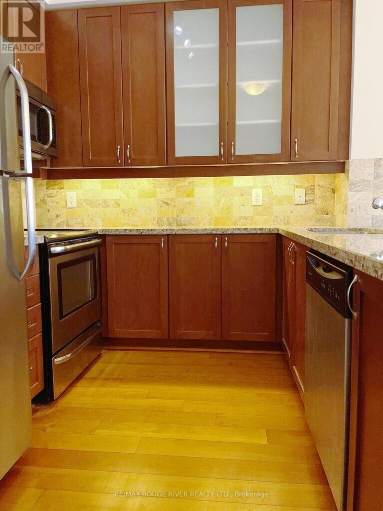 *High Demand Downtown Markham *Rare 1+1 With 2 Bathrooms *9Ft Ceilings *Warm Southern Exposure *Granite Kitchen Counter Top,Stone Backsplash,Engineered Hardwood Flooring *Stainless Steel Kitchen Appliances *One Underground Parking And One Locker *Amenities Include Indoor Pool,Gym,Party Room *Close To Parks,Shopping,Restaurants,Public Transit,Access To Hwy 407* Tenant Pays Hydro (id:52069) ID#: 1409615