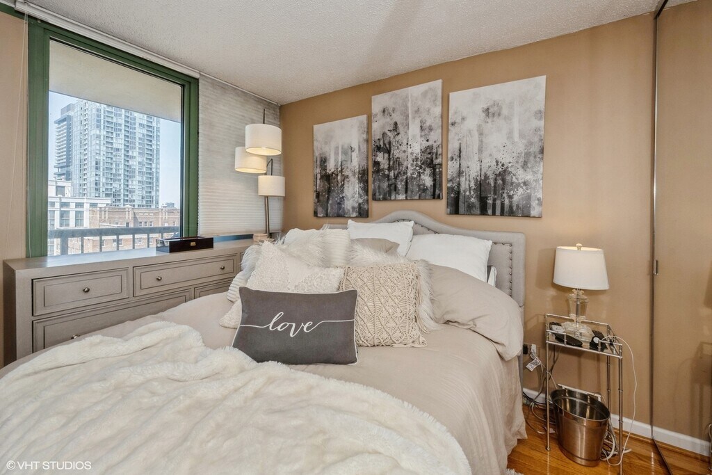 AMAZING sunsets and sweeping city views from floor-to-ceiling windows of this corner end-unit at Gold Coast Galleria! Grill in your own private balcony! Updated 1-bed Junior Suite w/ HW floors, newer custom kitchen w/ double capacity D/W, climate control and spacious closets. Full-amenity bldg. Near CTA Red Line, buses, Michigan Av/Mag Mile, restaurants, shopping, walker's paradise!! Listing courtesy of: Coldwell Banker Realty