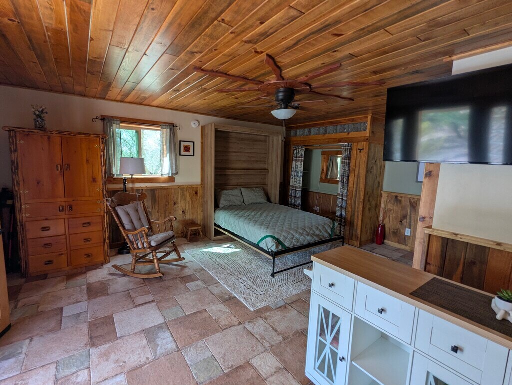 Furnished Casita for Rent in Desert Hills, AZ 85086 Newly remodeled fully furnished Casita on 1.25 acres is move-in ready. New Queen Murphy bed. Big screen streaming TV. Kitchenette with pantry, refrigerator, microwave, toaster oven & coffee maker included. Rolling kitchen island with drop leaf countertop and stool. Utilities, AC, high speed internet included. Laundry room in main home. Bathroom, roomy shower and storage cabinet. One occupant only. No pets. No smoking. Off street parking inside fenced area. Close to TSMC in north Phoenix and Honor Health Sonoran Crossing Medical Center. $1400 / month with month-to-month lease agreement. First and last month rent due at signing with $300.00 non-returnable cleaning fee.