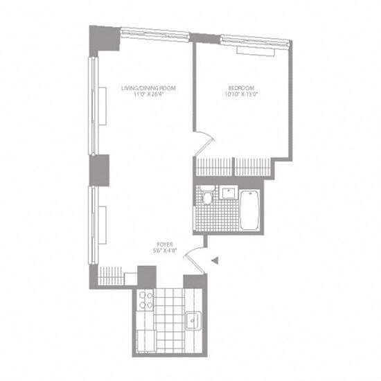 1E Renovation 2 - Floorplan 1 Apartment Unit: 17DApartment Model: 1E Renovation 21 Bedroom, 1 Bath, 599 sq ftAvailable Now1AF Renovation 2