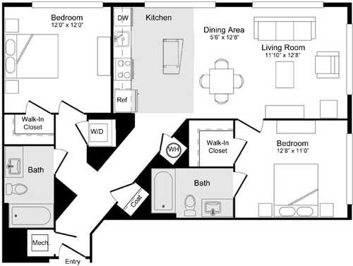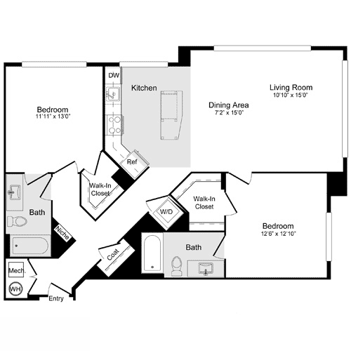 1 Bed, 1 Bath, 886 sq ftAvailable NowModel Gallery