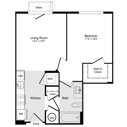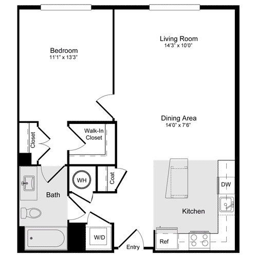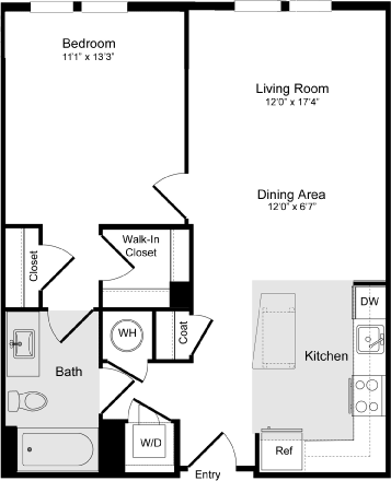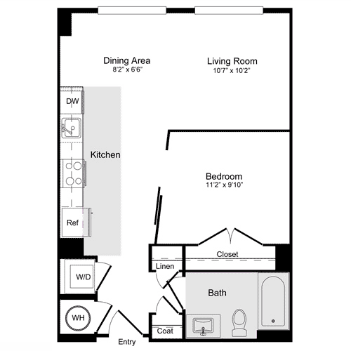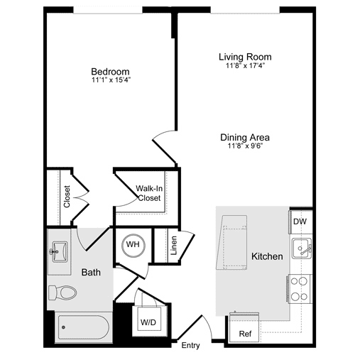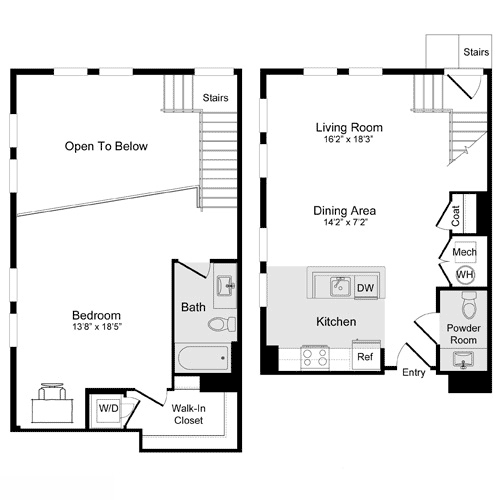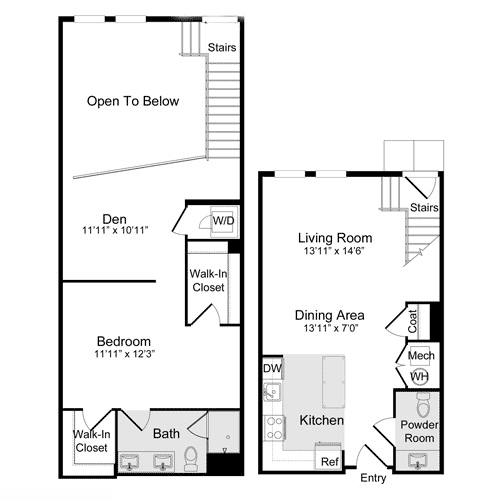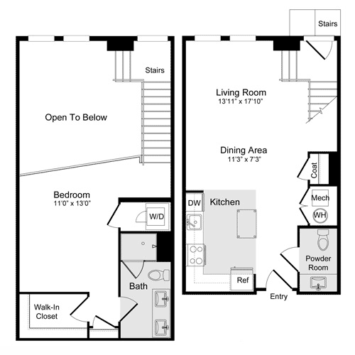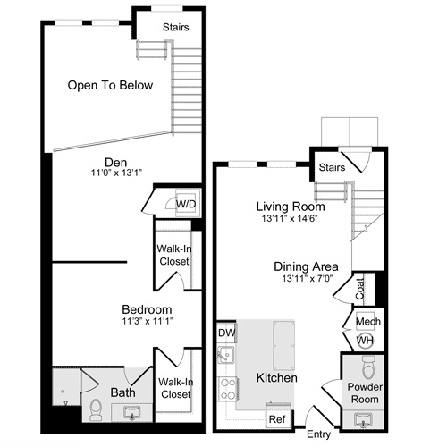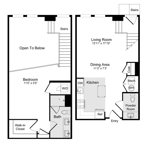 A-11a Loft - Floorplan 1 Apartment Unit: N-137Apartment Model: A-11a Loft$2,7551 Bedroom, 1 Bath, 886 sq ftAvailable NowFloorplan A-1