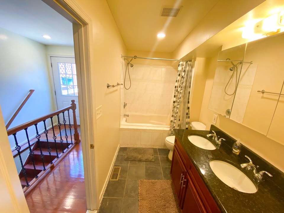 Available Nov 1 with flexible move in dates and discount for an 18-month lease term ~3 car parking pad ~2-tier roofdeck accessible from a common hallway ~Kitchen w/ SS appliances, granite countertops, stone backsplash ~Hardwood floors throughout ~Tiled kitchen and bathrooms ~Central heating/AC in all of the rooms ~Finished basement ~Patio with propane grill, lockable gate ~Less than a 3 minute drive to 95/295 Be just steps from the new Stadium Square development, a revitalized park, and the Federal Hill bar/restaurant scene. Also within a 5 minute walk is the Hamburg Street Lightrail stop Floor 1 contains the family room, open kitchen, and patio with a lockable gate leading to the 3 car parking pad. Floor 2 has a front bedroom with 3 bay windows, a back bedroom with 2 large windows and a large 29sq-ft closet, and a full bath in the middle of the hall that separates the two. Floor 3 boasts a full bathroom with Jacuzzi tub and double sinks, a large front bedroom with a walk in closet, and the laundry room. The door off the hallway leads to the lower deck hosting potted plants, a spigot/hose, and a spiral staircase leading up to the roofdeck with sweeping views of the Baltimore skyline.
