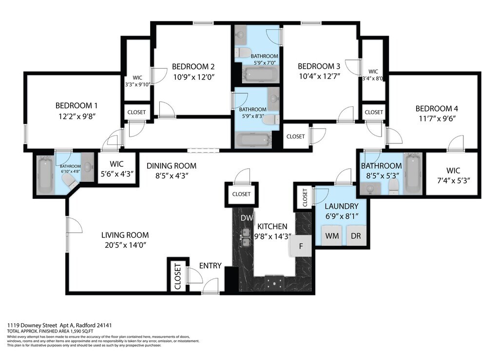 | Radford 4 Bedroom Apartments | $752 | $430 | $1,800 |