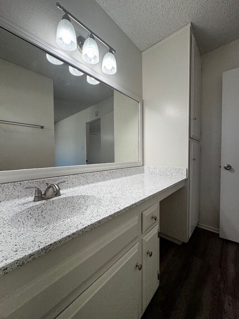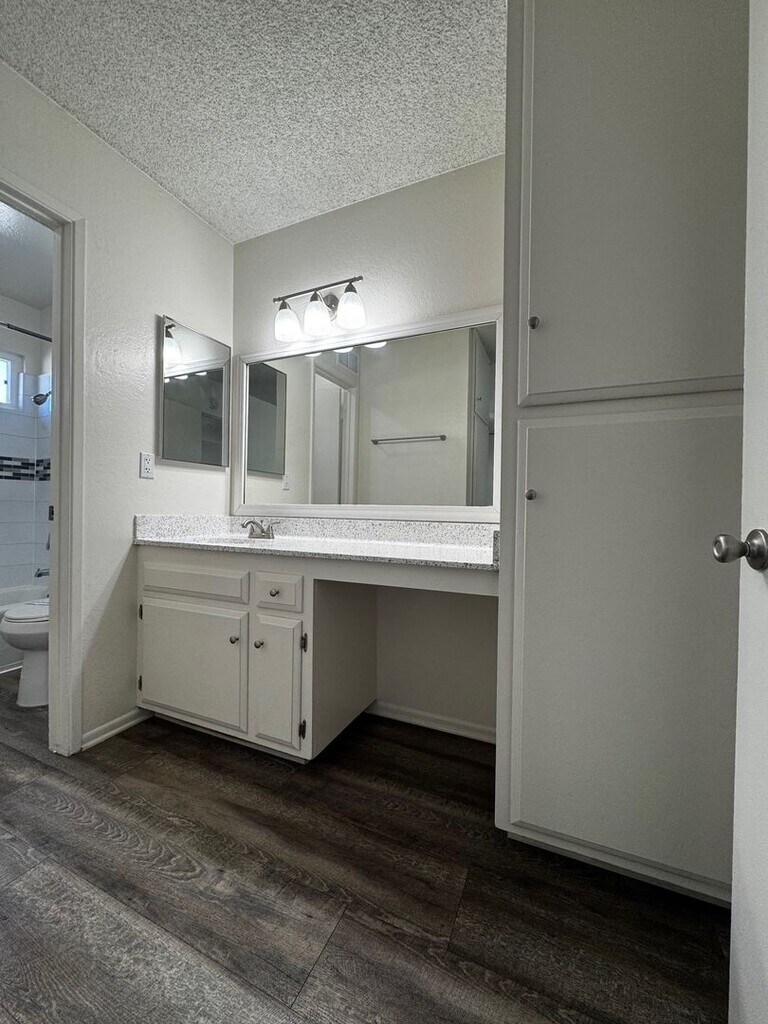 1+1UP Beautiful spacious one bedroom one bath unit that features new hard wood/vinyl flooring throughout. Carpet and ceiling fan in the bedroom. Includes one assigned carport with storage. Pet Disclaimer: Service and Emotional Support Animals are exempt from any pet restrictions and fees. We are conveniently located right off the 5 and 55 freeways, just blocks away from Costco. Near The Village at Tustin Legacy Shopping Center, The Market Place, fine dining and shopping. Please call or email us today to schedule a tour or for more information. We look forward to hearing from you soon!!