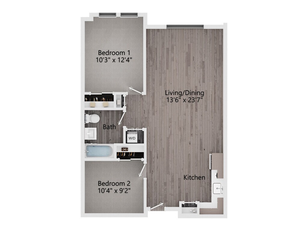 2 Bedroom, 1 Bath A - Floorplan 1 Apartment Unit: 118Apartment Model: 2 Bedroom, 1 Bath A$2,8952 Bedroom, 1 Bath, 678 sq ftAvailable Now2 Bedroom, 1 Bath B