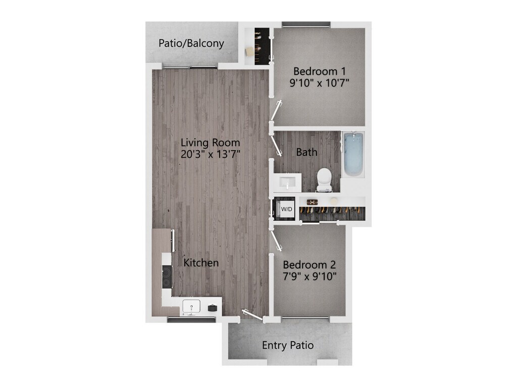 Apartment Model: 2 Bedroom, 1 Bath B$3,7952 Bedroom, 1 Bath, 800 sq ftAvailable NowFloor plans are artist's rendering. All dimensions are approximate. Actual product and specifications may vary in dimension or detail. Not all features are available in every rental home. Prices and availability are subject to change. Base rent is based on monthly frequency. Additional fees may apply, such as but not limited to package delivery, trash, water, amenities, etc. Deposits vary. Please see a representative for details.