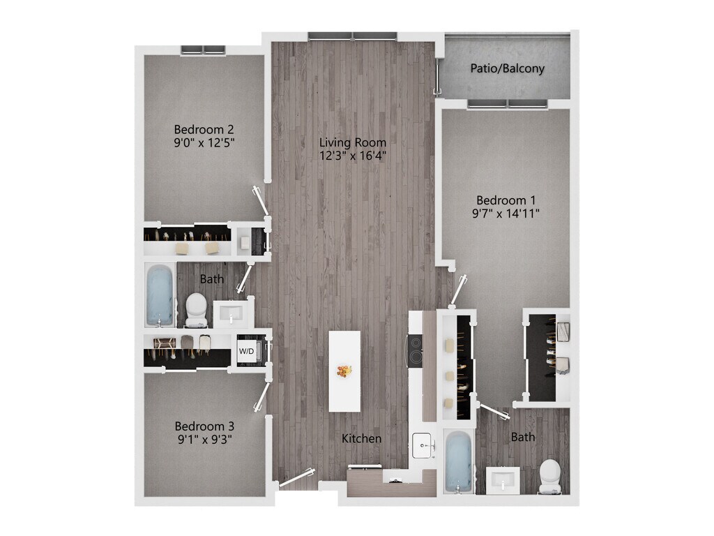 3 Bedroom, 2 Bath B - Floorplan 1 Apartment Unit: 214Apartment Model: 3 Bedroom, 2 Bath B$3,9503 Bedroom, 2 Bath, 1076 sq ftAvailable Now