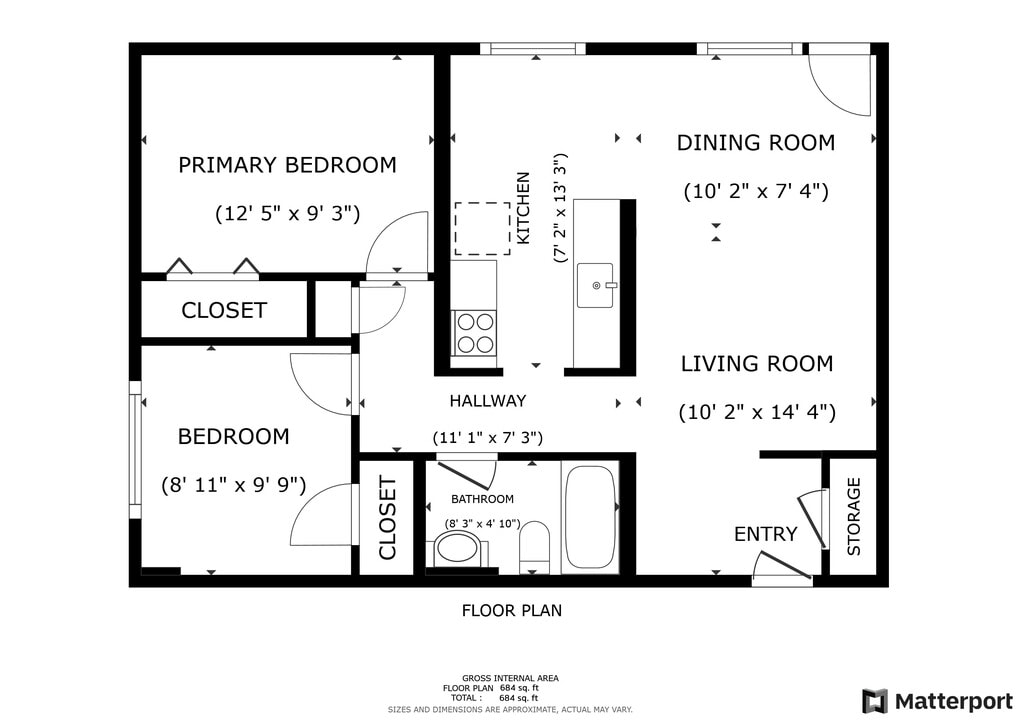 Apartment Model: 2 Bedrooms, 1 Bathroom2 Bedroom, 1 Bath, 5-705 sq ftAvailable NowFloorplansPhotos![]()