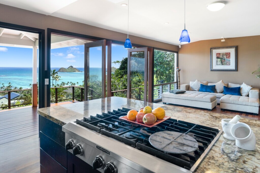 A Place of Peace: Where Heaven Meets the Ocean This elegant and contemporary home boasts 2 bedrooms and 2 bathrooms. Offering stunning panoramic views of the ocean and Mokulua Islands, this immaculate property is available between July 18th and October 1st 2024 and can be rented for a period of 29 nights or more. Immerse yourself in the beauty of sunrises, moon rises, and the mesmerizing sight of surf and breaching Humpback whales just offshore. Located a short stroll away from the world-famous Lanikai Beach, you'll enjoy the convenience of this prime location. Indulge in the constant gentle breezes of the windward side of Oahu, as this home seamlessly blends indoor and outdoor living. The generous deck and oversized sliding glass doors allow the refreshing trade winds to flow throughout the house. The fully equipped kitchen features modern appliances, including a refrigerator/freezer, microwave/toaster oven, cooking ranges, and dishwasher. It is thoughtfully stocked with a coffee maker, blender, rice cooker, and all the necessary dishes, pans, and kitchen utensils. Additionally, the home includes a washing machine and dryer, outdoor gas grill, big flat screen TV, and wireless internet. All linens and towels, including beach towels, are provided. Lanikai park, situated at the foot of the street, offers a playground, basketball court, and workout station. For those seeking outdoor activities, the 2.2-mile Lanikai loop is perfect for an early morning jog or late afternoon walk. The Lanikai Pillbox trail leads to World War II lookouts perched atop the mountain, treating you to breathtaking views of the Koolau mountains, Kailua, Lanikai Bay, and the Mokulua Islands. Kailua is a charming beach town with an array of fantastic dining, shopping, and recreational options that ensure endless entertainment. While Kailua and Lanikai beaches are the town's prominent attractions, there are also delightful culinary experiences and unique shopping opportunities to be discovered. The Beach: Kailua's jewel is a long, picturesque bay protected by a coral reef. Its nearly 4-mile stretch of pristine ivory sand invites leisurely strolls, while the favorable weather and wave conditions offer ideal opportunities for swimming, kayaking, windsurfing, and kitesurfing. Heading south along the shore, you'll find the exclusive enclave of Lanikai, boasting million-dollar views and matching mansions. While having a car is recommended, Oahu is renowned for its excellent bus system, with numerous stops that can transport you throughout the island. Please refrain from smoking indoors and kindly maintain a noise-free environment after 10 PM. This stunning Lanikai hillside home with two bedrooms and two bathrooms is exclusively available from July to October 2024. Please be informed that this property is a legally established dwelling available for rent for a minimum of 30 consecutive days or more, regardless of actual occupancy.