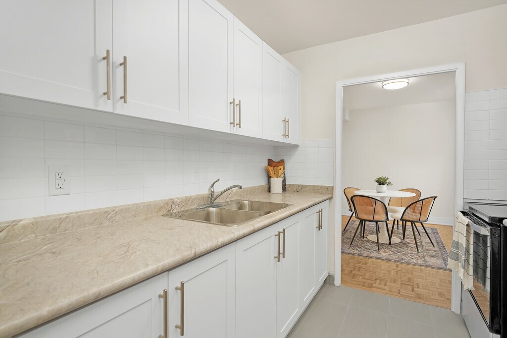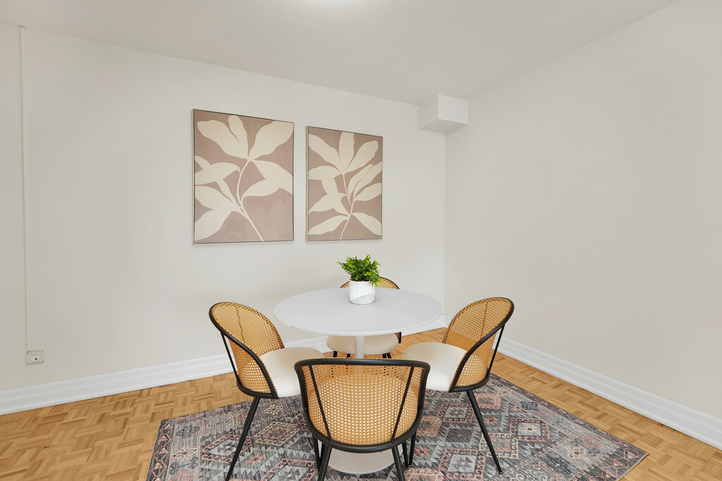 RENOVATED 2 Bed 1 Bath in PRIME ETOBICOKE - Royal York Gardens Royal York Gardens at 1141 Royal York Road is located steps from transit, lush parklands and the Humber River Recreational Trail. Amenities include parking, laundry facilities, gym, meeting room, and 24 hour onsite maintenance. Incentive: • 1 month free on 12-month lease! Welcome to this spacious 2-bedroom, 1-bathroom unit that offers plenty of room for relaxation and entertainment. The living room is bright and inviting, with large windows that allow for plenty of natural light.The kitchen is well-appointed with modern stainless steel appliances and plenty of cabinet space. The dining area is adjacent to the kitchen, providing an ideal spot for family meals or entertaining guests.The two bedrooms are generously sized and offer plenty of closet space for storage.The bathroom is beautifully designed with modern fixtures and finishes.This unit also offers several amenities to ensure your comfort, including heating, on-site laundry facilities, parcel lockers, gym, meeting room, off-street parking, and 24 onsite maintenance.The location is convenient to shopping, dining, and public transportation, making it an excellent choice for those who want easy access to everything the area has to offer.