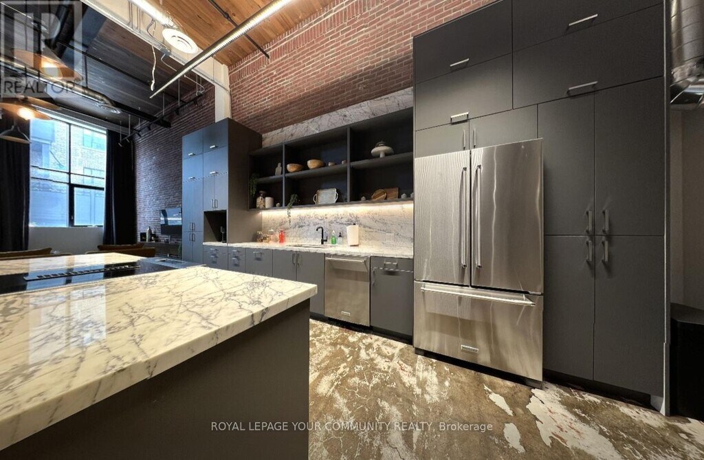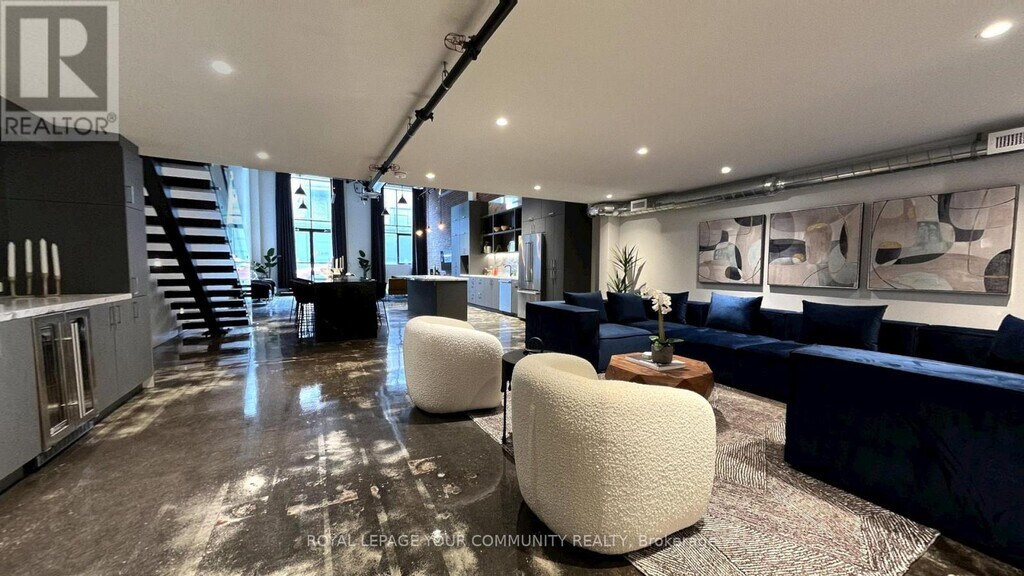 Welcome to i-Zone Live-Work Lofts,one of Toronto's most distinctive and sought-after warehouse conversions,perfectly situated at Dundas Street East and Carlaw Avenue. This rarely available 1-bedroom loft offers the ultimate blend of creative energy,industrial character,and luxurious modern finishes. Soaring 17ft ceilings,oversized windows and high-end fixtures throughout create a perfect balance of sleek sophistication and authentic loft charm. Designed with both style and function in mind,this residence is ideal for anyone seeking a home that reflects their individuality. At i-Zone,lifestyle extends far beyond your front door. Residents enjoy access to a rooftop deck,a party room,meeting room,games room,and secure entry system. The building is also pet-friendly! Living here means immersing yourself in one of Toronto's most dynamic and artistic neighbourhoods. Surrounded by galleries,studios,and creative spaces,you'll be part of a vibrant community that thrives on inspiration. Just steps away,discover trendy cafés,craft breweries,boutique fitness studios,and some of the city's best restaurants in trendy Leslieville and Riverside. Commuters and city explorers alike will love the convenience with a 9/10 Walk and Transit Score and 8/10 Bike Score,you're never far from where you need to be. The DVP,Gardiner,TTC,and downtown core are all within easy reach. If you've been searching for a home that's as unique as you are,this stylish loft at i-Zone delivers an inspiring backdrop for your next chapter. (id:52069) ID#: 1969957