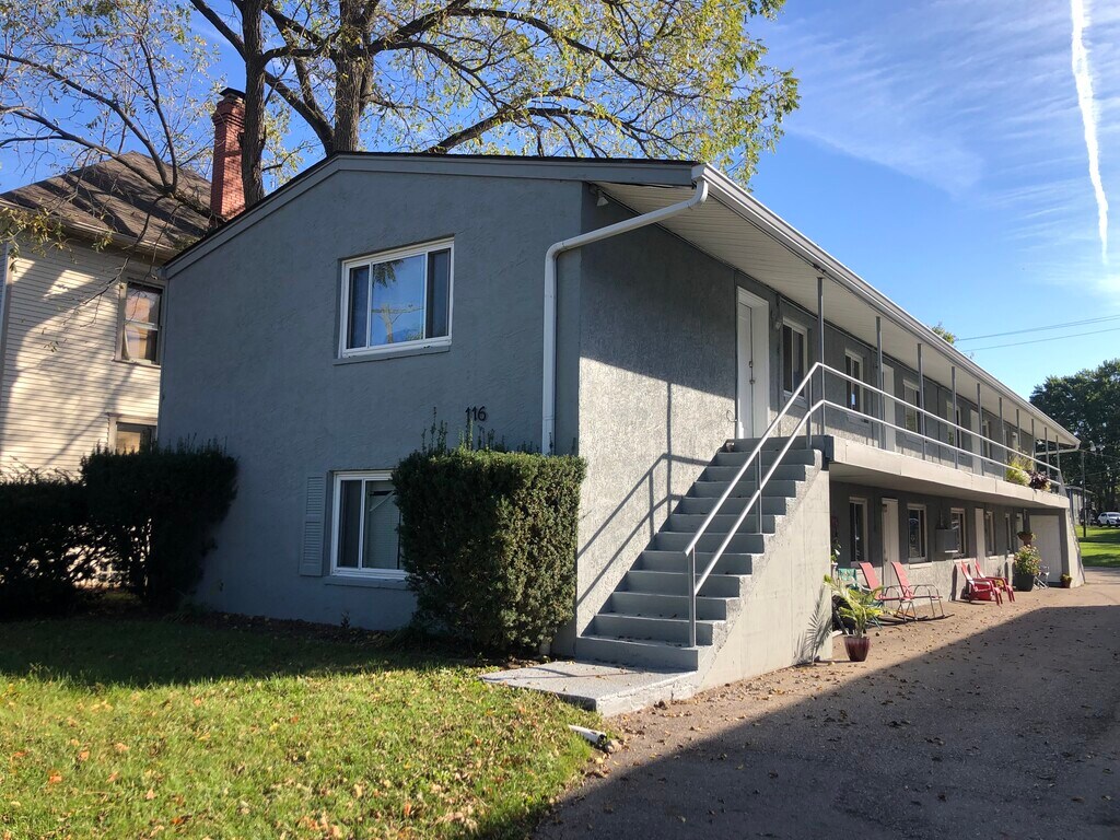 Great location in Old Gahanna, 2 blocks from Creekside. Quiet 8 unit apartment building, 4 units over 4 units. More than half of the units have been completely remodeled in the last few years. Water, sewer and trash are included in the rent, tenant pays electricity (and gas in the older units). Each apartment has one off street parking spot in the rent price.