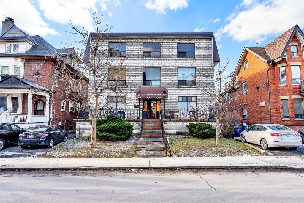 *SPECIAL PROMOTION: One Month Free Rent!* Welcome home to 116 Spencer Avenue! This boutique apartment building is located near King & Dufferin in the heart of the South Parkdale neighbourhood of Toronto, steps to absolutely everything this incredible City has to offer. Easy access to TTC right at your doorstep and less than 2 minutes from the Gardener Expressway. This low-rise community offers the ultimate combination of comfort and convenience. Professionally managed, well-maintained and an unbeatable location- 116 Spencer Ave has the perfect home for singles and couples alike with its chic studio and one bedroom suite offerings. These beautiful apartments have been newly renovated top to bottom, featuring modern kitchens with custom cabinetry and stainless steel appliances. Modern bathrooms with quality finishes. Stunning wood flooring throughout, large windows offer plenty of natural light, and tons of closet space. Book your tour today and discover what this incredible neighbourhood has to offer! *Photos are intended to depict suite finishes and may not be of actual suite.
