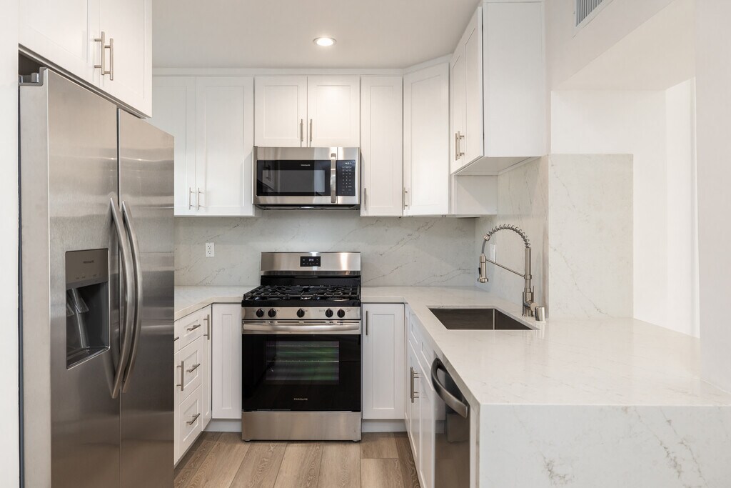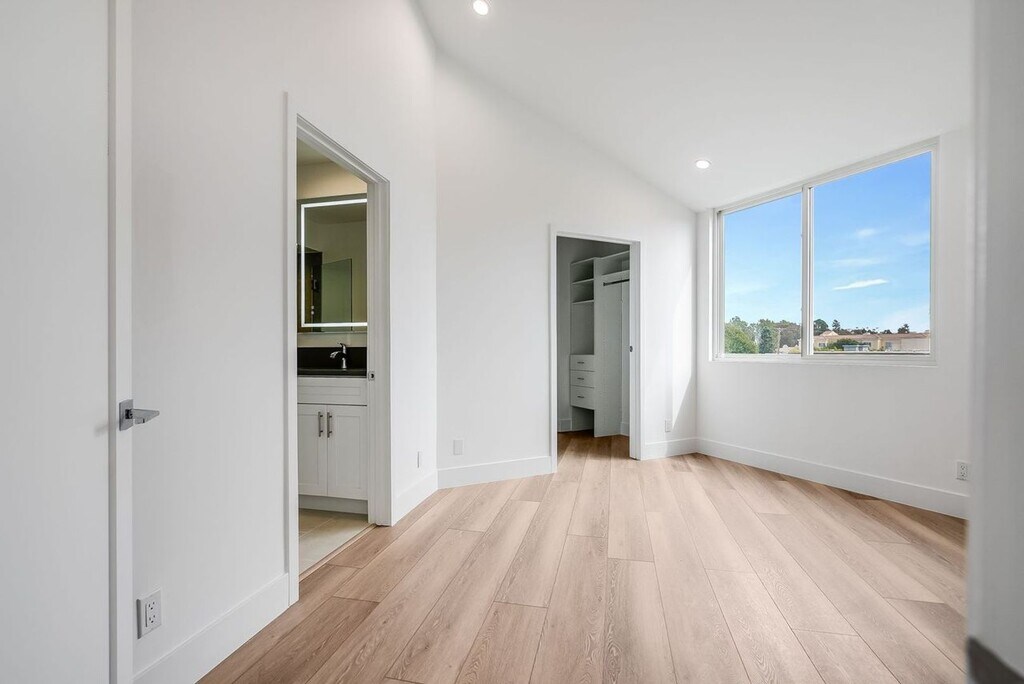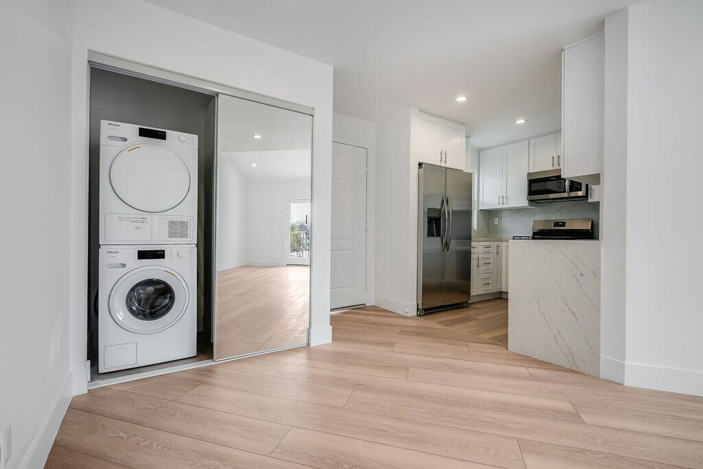 Welcome home to this ultra luxurious apartment home located near all the best that Brentwood has to offer! This bright and newly updates, premier penthouse 2 bedroom, 2 bathroom apartment has all the modern amenities featuring vaulted ceilings, a gorgeous chef's kitchen with quartz waterfall countertop and backsplash, high-end stainless-steal appliances, and custom cabinets with custom hardware. Each bedroom features an en-suite bathroom and ample closet space. In addition to the sleek design, these stunning apartment homes feature luxury flooring throughout, recessed lighting and convenient in-unit laundry. With amazing restaurants and cafes around the corner, stylish shops, and grocery stores, everything is minutes away from your new home. Live your best you at Darlington Place. Centrally located near Westwood, Beverly Hills and everything the Westside has to offer.