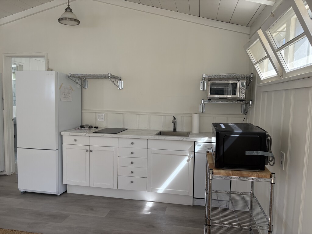 Balboa Island Charming One Bedroom Apartment in 1940's Yale Built Home New Refrigerator, Dishwasher, Sink, Two Burner Cooktop, Microwave and Toaster Oven New Flooring and Carpeting. Outdoor Deck above Alley Parking Space Shared Washer and Dryer in Garage