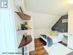 Welcome to your new home! This one-bedroom sanctuary (plus bonus room/office)has real character and might just be the answer to your prayers (well,maybe not all of them-but it's a good start). Located on the upper floors of a private triplex,this light-filled apartment blends century-home charm with modern comfort. Exposed beams,feature walls,and hardwood floors (made with actual wood) give it warmth and personality,while modern conveniences like en-suite laundry and dishwasher ensure you're firmly in the 21st century. The bonus room is perfect for a home office,to unleash your inner Picasso,or to practice yoga and meditation-whatever inspires your creative or zen side. Step outside to your massive private terrace surrounded by mature trees and lush greenery. It's like having your own treehouse - minus the drive to Muskoka (and the bears). On snowy winter days,a cozy nook in the living room awaits,perfect for curling up with a blanket and hot chocolate-because hibernation is real. With wonderful neighbors and a clean harmonious atmosphere,you'll feel at home from day one. As an added bonus,there's a shed-because your bike deserves a home,too. Located in Toronto's Upper Beaches-East York area,you're close enough to downtown with direct streetcar access to downtown for work and fun,yet far enough from the concrete jungle to enjoy peace and tranquility among mature trees. TTC streetcar is steps away,and Woodbine and Coxwell subway stations are both within walking distance. Woodbine Beach and the boardwalk are nearby-our own Canadian version of Baywatch (minus the slow-motion running). You'll pay 1/3 of the utilities (it won't break the bank) and need a street permit for parking (cheap!). The home is non-smoking. Well-behaved pets are welcome-except alligators. Vacant and ready for move-in. Come take a look and prepare to fall in love (id:52069) ID#: 1821508