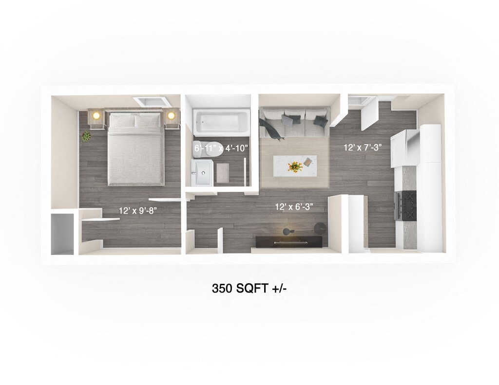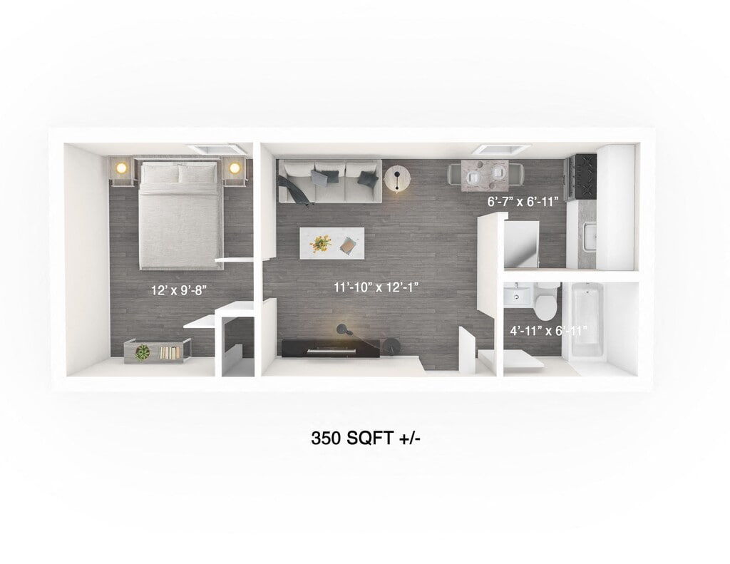 1 Bed, 1 Bath, 350 sq ftAvailable Nov 1Model Gallery