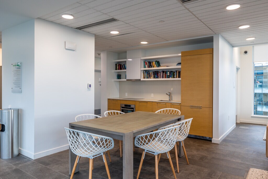 Furnished 1 Bedroom 1188 Bidwell is a distinctively modern, classically detailed boutique high-rise. The building design echoes a perceived West End ‘vernacular’ of sometimes decorative mid-twentieth-century International-Style Modernism that, in the West End, often incorporates geometric patterning of chevron, diamond, rounded or angled forms combined with frequent use of horizontal ribbon windows and upturn balcony edges.Shared amenity spaces include a wide range of features for these pet-friendly residences including large outdoor terrace areas, indoor lounge rooms, a double height lobby, a workroom, a large fitness room, bike repair and car wash facilities along with the required complement of enclosed bicycle parking and bulk storage areas for each suite.The colour palette is kept minimal using the contrast of white materials against darker window frames and panels. White oak wood flooring takes you from one space to another, creating an effortless, open flexibility. Efficient plans and generous windows amplify the feeling of spaciousness, while modern design and details elevate these homes to an enviable level. | Move-In Now Incentive: • 1 month free rent