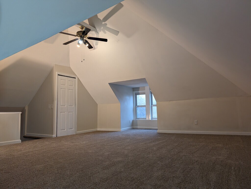 Clean, quiet and spacious. Great location. This fully carpeted 2 bedroom apartment includes the second and third floors of a three story duplex house that is located just 2 blocks south of Schiller Park and just around the corner from the Thurman Cafe. The apartment includes an entry room, 2 bedrooms (10' x 13' and 11' x 13'), living room with an ornamental fireplace (12' x 15'), bathroom, recently updated kitchen and huge 3rd floor loft that offers more than 500 sq ft of newly carpeted open quiet space. The whole apartment offers 1200 sq ft of living space. The appliances that are provided in the updated kitchen include a refrigerator with ice maker, dishwasher, gas stove with range hood, extra deep sink with a pull-down faucet and a garbage disposal. The house includes a basement and a side yard that are both shared with the downstairs tenant. The basement includes a washer and a dryer (not just w/d hookups) that are dedicated to the upstairs apartment along with the dedicated gas water heater and gas furnace. The basement also offers lots of dry storage space. The side yard includes a beautiful brick patio for entertaining and some green space for gardening. The apartment has central air conditioning. There is always lighted, no-permit on-street parking available right in front of the house. Monthly rent and one months security deposit are each $1,400.00. WATER IS INCLUDED IN THE RENT. This home is available November 1st. One cat is welcome at $15/month. Sorry no dogs. I will be showing the apartment by appointment.