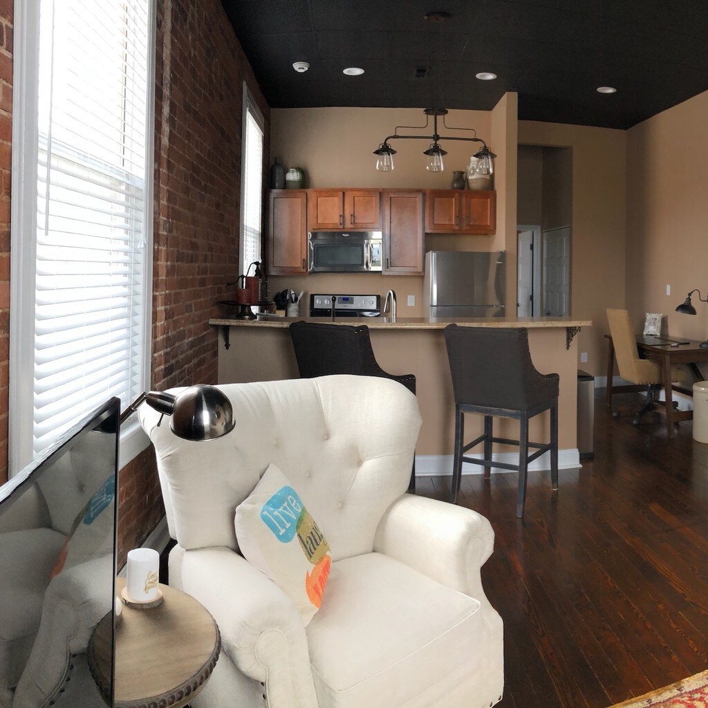 This loft apartment is located on the 2nd floor of a renovated, historic building in downtown Farmington, MO. No pets allowed. This is a one bedroom apartment with a 2 person limit. The space has lots of character with exposed brick walls, 10.5 ft. ceiling and refinished, original hard wood floors. The bathroom is tile with all new fixtures. The kitchen includes an eat-at counter and has new stainless steel appliances including a dishwasher. There is also a washer/dryer in the unit. The building is secure with a keypad entry and includes a monitored fire alarm system. This building is located within walking distance of several restaurants, bars and coffee shops as well as the post office and numerous banks and churches. The convenience and character of this loft can't be beat. The monthly lease includes cable TV, internet and trash pickup. This apartment is perfect for someone who does not want to live in a large apartment complex.