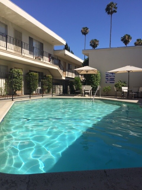 Quiet complex with sparkling courtyard pool! Close-by, and on public transit route, to CalTech, JPL, shopping, library, and post office! Units are newly updated with all new flooring, tile/vinyl wood imitation (for easy cleaning), granite counter top kitchen counters, ceiling fans in bedrooms! Spacious living area and bedroom(s)! Our units are provided with gas wall furnace, gas range, dishwasher, and wall AC!