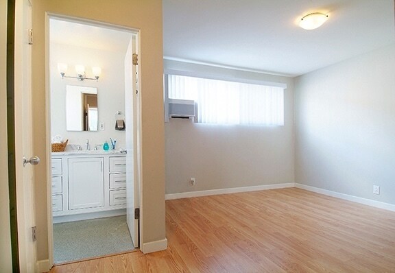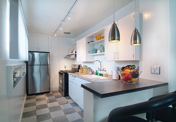 FREE New Microwave with 1 Year Lease as Move-in Bonus. XLNT 2nd Floor Rear Unit in a well managed 1950's 7 unit building with nice Mid-Century Modern vibe. The building's fascia is distinctively clad with a very retro cool 1956 mosaic that spans 2 stories, by renowned artist, Evelyn Ackerman (1924-2012). Convenient layout with ensuite bathroom that has nice tile tub/shower combo. This unit renovated with many updates. Kitchen was nicely upgraded with handsome granite countertop + bar area, Fridgidaire Stainless Steel Appliances, a 5 Burner Stove + Fridge, stainless sink, new hardware, energy saving LED track lighting on dimmers + designer vinyl flooring. Living + Bedrooms have laminate flooring + bedroom has A/C with remote. Bathroom has updated vanity with real Carrera Marble countertop, newer sink + faucet, tub/shower faucets, lighting fixture, chrome hardware, laminate shelves + terrazzo style designer vinyl flooring. Includes 1 off street covered parking spot behind the building + on-site laundry room. A very bright + open feeling apartment. One of WLA's most convenient areas, located 2 blocks North of Wilshire Blvd. + 1/2 block East of Bundy Dr., with a Walk Score of 90/100. Short walking distances to casual, fast food (sandwiches, burgers, pizza, etc.) and nicer dining choices all nearby. CVS Pharmacy .4 mi., Ralph's Market + Starbucks .3 mi., Coffee Bean & Tea Leaf .6 mi, 7-11 .5 mi., Whole Foods .6 mi., Trader Joe's 1.7 mi, Chase Bank .4 mi., Wells Fargo Bank .6 mi., Ronald Reagan Med. Center + UCLA 2.5 mi., V.A. Greater LA Healthcare 2.0 mi. Not everybody in WLA wants to live in a 150 unit building and this is a nice alternative. This rental requires strong financials, including good credit + rental history. 1 year lease required, but PLZ inquire about optional 2nd year. Thank you for your interest + please call 310/344-8233 for more info. or an appointment.