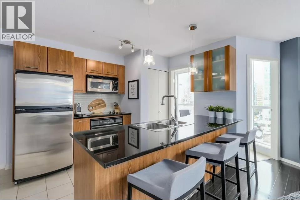 Modern 1 Bedroom + Den + Flex at Brava - Across from Emery Barnes Park Live at Brava,one of downtown Vancouver´s most desirable buildings,steps from Yaletown shops,dining,and Choices Market. This bright corner suite offers floor-to-ceiling windows,engineered hardwood floors,and an open layout with a gourmet kitchen featuring granite counters and stainless steel appliances. Enjoy in-suite laundry,a private BBQ-friendly balcony,parking,and storage. Building amenities include a 24-hr concierge,pool,hot tub,sauna,gym,theatre,and guest suites. Book a viewing: (id:52069) ID#: 1674858