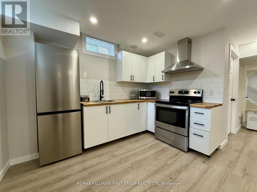 Welcome to this bright and spacious 1-bedroom apartment featuring modern finishes,high ceilings,pot lights,and large above-grade windows! Enjoy the convenience of 2 parking spots and a private side entrance that leads into your beautifully updated 1 bed,1 bath suite. The open concept layout offers ample space for a full dining and living room set,offering the perfect blend of comfort and livability. The oversized living room provides pot lights and flows seamlessly to the eat-in kitchen which offers three windows,plenty of counter and cupboard space,and stainless-steel appliances. The generously sized bedroom includes a walk-in closet and large window for added comfort. Ideally located just minutes from Hwy 401/407,shopping,restaurants,transit,and more - this home offers both style and convenience in a prime location. **Utilities Included** - internet not included but already wired for rogers. (id:52069) ID#: 1644945